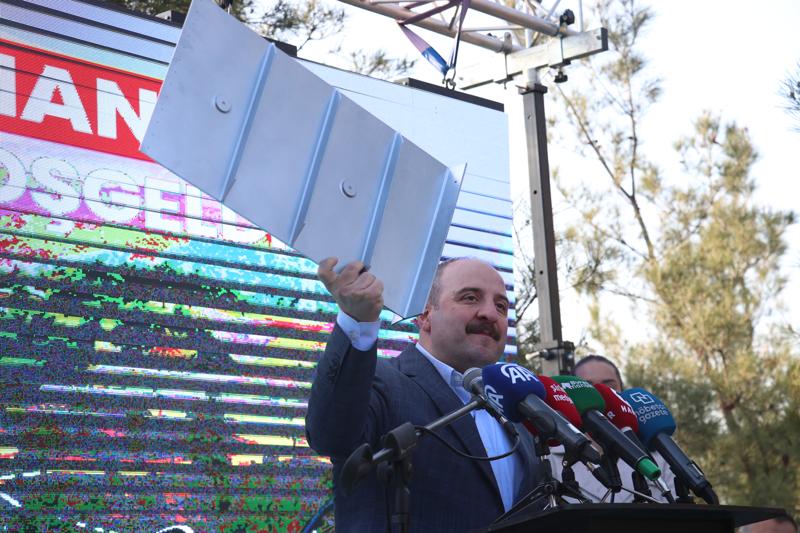 Gürsu Orman Parkı'nın açılışında Mustafa Varank, KAAN'ın ilk yapılan parçasını katılımcılara gösterdi.