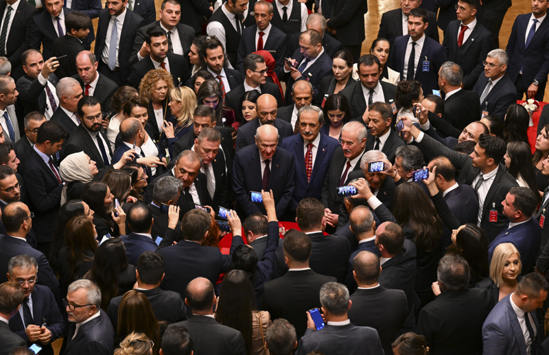 Bahçeli, Meclis'te 28. Dönem 2. Yasama Yılı resepsiyonunda gazetecilerin sorularını cevapladı.