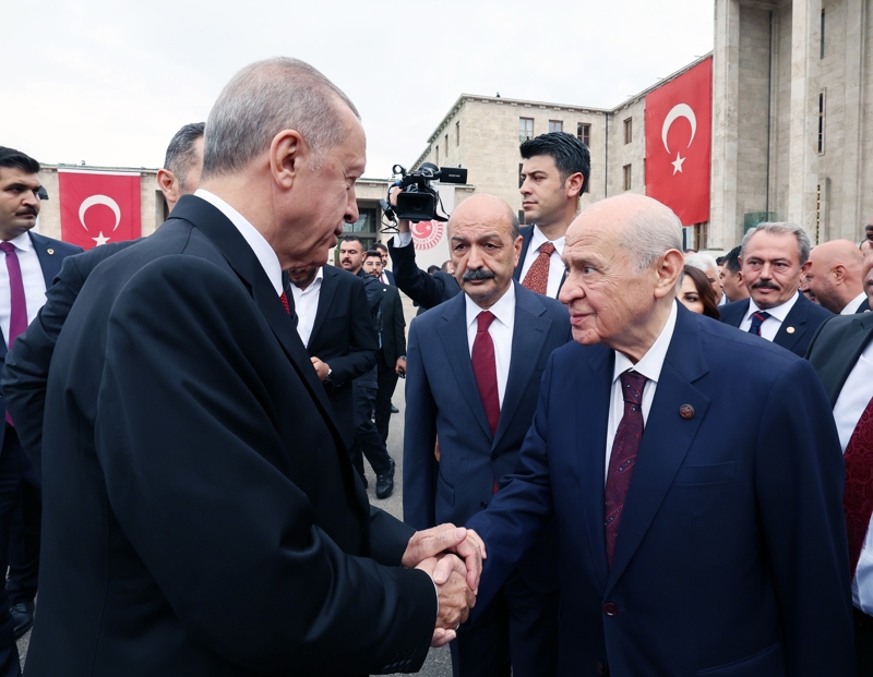 Bahçeli, Meclis'te 28. Dönem 2. Yasama Yılı resepsiyonunda gazetecilerin sorularını cevapladı.