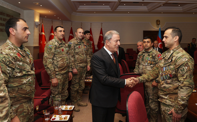 Akar, Türkiye Muharip Gaziler Derneği Genel Başkanı Beyazıt Yumuk ve Azerbaycan Karabağ Gazileri heyetini Milli Savunma Bakanlığında kabul etti.