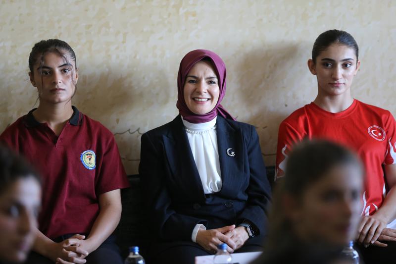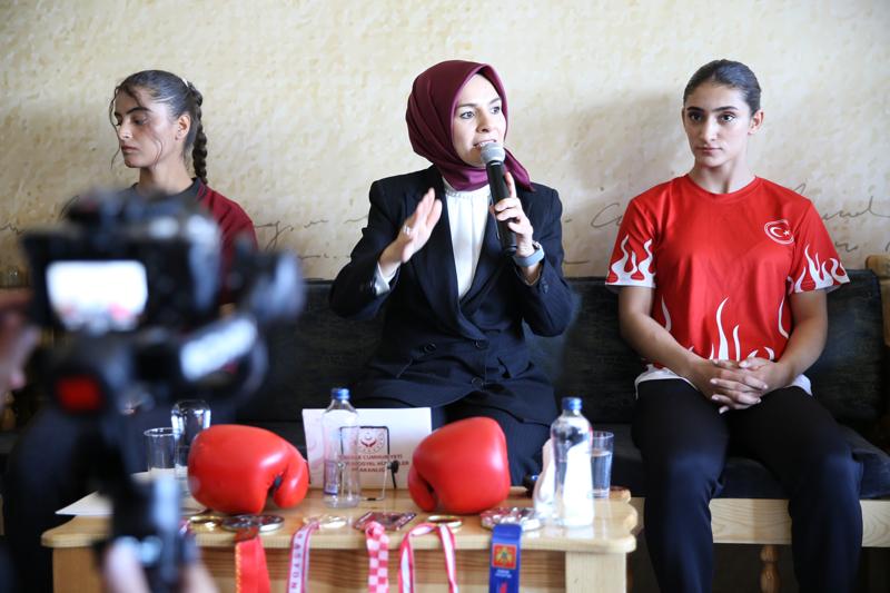 "Hayat, karşımıza zorluklarla mutlaka gelecektir. Ne olursa olsun okulunuzu bırakmayın. Üniversitenizi de okuyun, spor dahi olsa ulaştığınız neresi olursa olsun sizlere bir mesleki beceri kazandırsın. Bu, sizin için çok önemli. Çocukları, arkadaşlarınızı spora teşvik edin. Okullaşmak gerçekten çok kıymetli. Devlet olarak her daim kız çocuklarımızın okullaşma oranını artırmak için Cumhurbaşkanı'mız önderliğinde çok güzel adımlar attık. Baba Beni Okula Gönder ile başladık 2011'de. Okullaşma oranımız neredeyse yüzde 100. Biz, tabii bu seviyeyi artırmak istiyoruz. Yarının kadınları olarak sizin çok güzel yerlere geleceğinizi düşünüyorum. Sizlerin arasından ülkenin en iyi sporcuları, müzisyenleri, bilim insanları çıkacağını düşünüyorum. Ben, her birinizle gurur duyuyorum. Her birinize teşekkür ediyorum. Asla pes etmeyin, bu sizin hayat felsefeniz olsun."