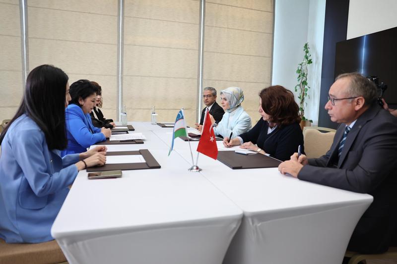Kadın, çocuk, aile ve sosyal politikalar konularında görüş alışverişinde bulunulan görüşmede, Türkiye ve Özbekistan arasında imzalanması planlanan aile ve kadın alanındaki mutabakatın da ele alındığı bildirildi.