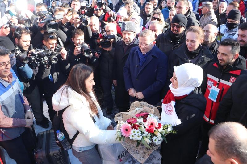 Ankara'dan yaklaşık 27 saatlik yolculuğun ardından Sarıkamış Tren Garı'na ulaşan treni karşılayan Göktaş, bazı gençlere çiçek takdim etti.