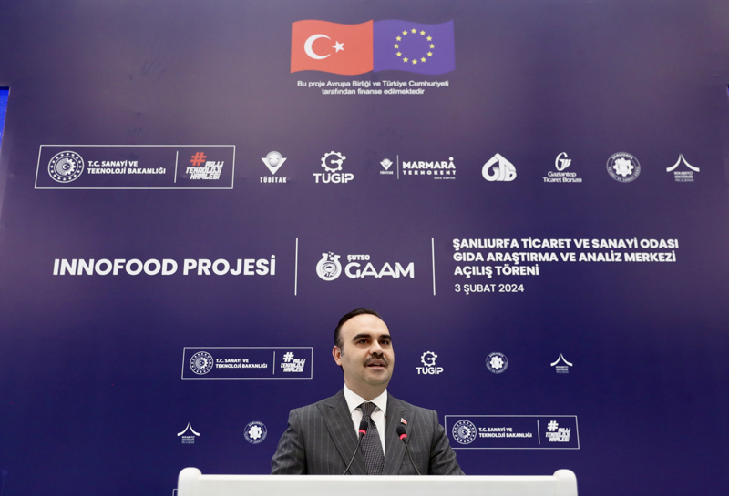 Bakan Kacır, Şanlıurfa Organize Sanayi Bölgesi'nde yapımı tamamlanan IPA-INNOFOOD Projesi Şanlıurfa Ticaret ve Sanayi Odası Gıda Araştırma ve Analiz Merkezinin açılış töreninde, bereketli toprakları, zengin tarım ürünleri çeşitliği ve kadim tarihi bulunan Şanlıurfa'da bulunmaktan duyduğu memnuniyeti dile getirdi.