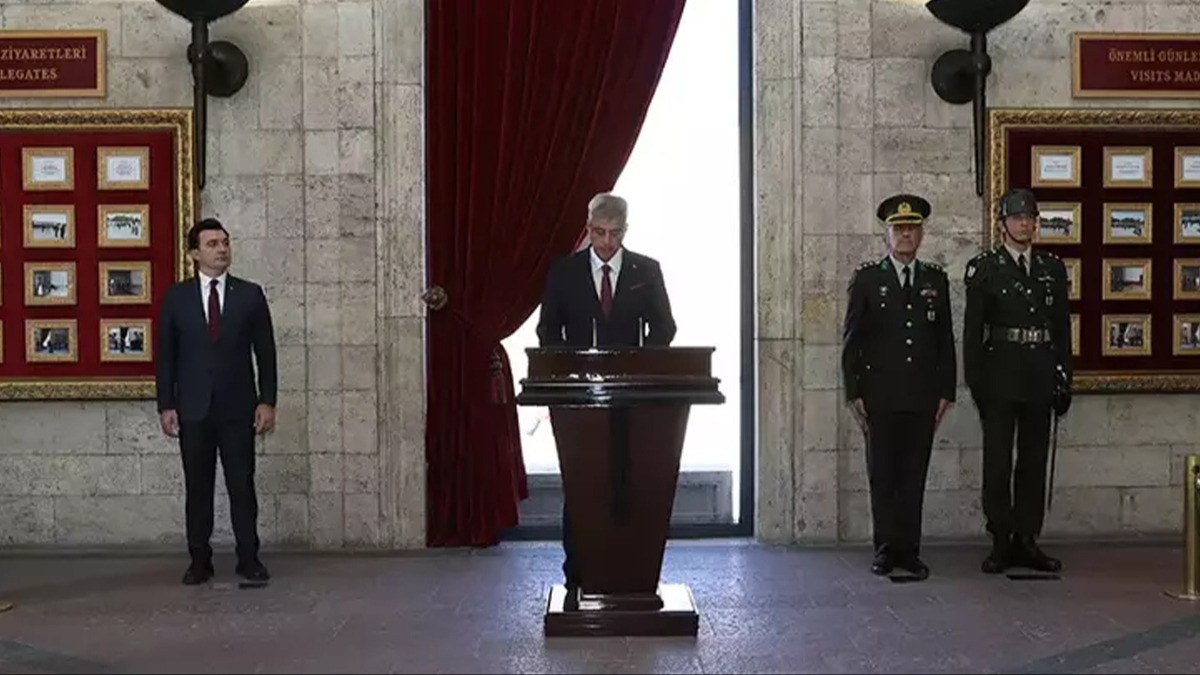 Bakan Memişoğlu, Aslanlı Yol'dan yürüyerek Gazi Mustafa Kemal Atatürk'ün mozolesine geldi. Memişoğlu'nun mozoleye çelenk bırakmasının ardından saygı duruşunda bulunuldu.