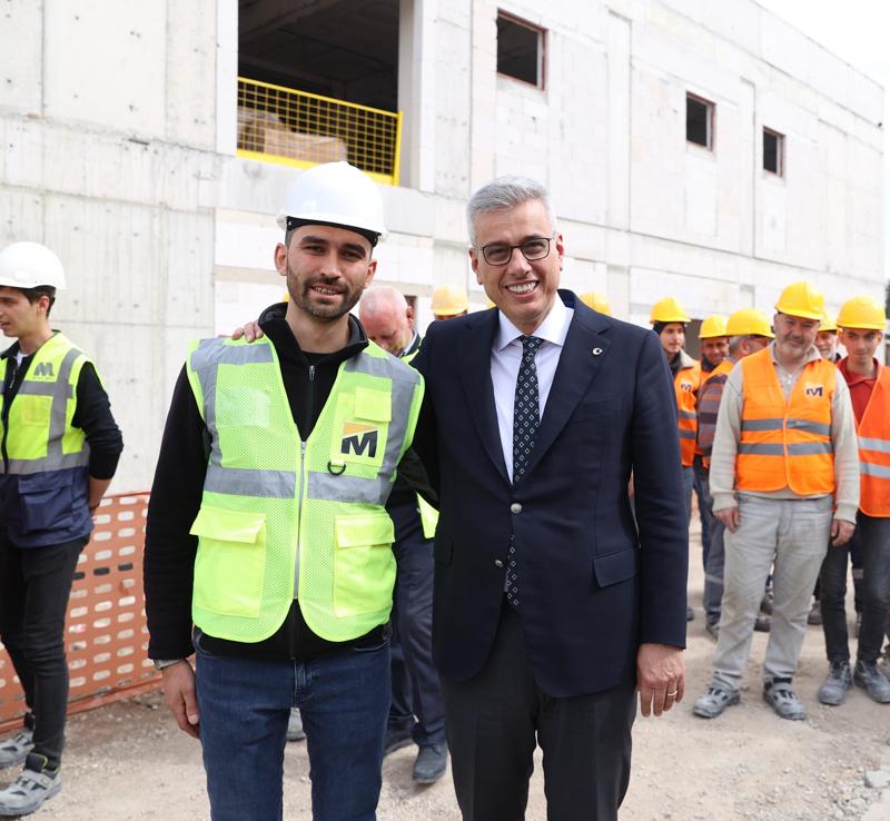 Daha sonra 200 yataklı devlet hastanesi inşaatını gezen Memişoğlu, incelemelerde bulundu.