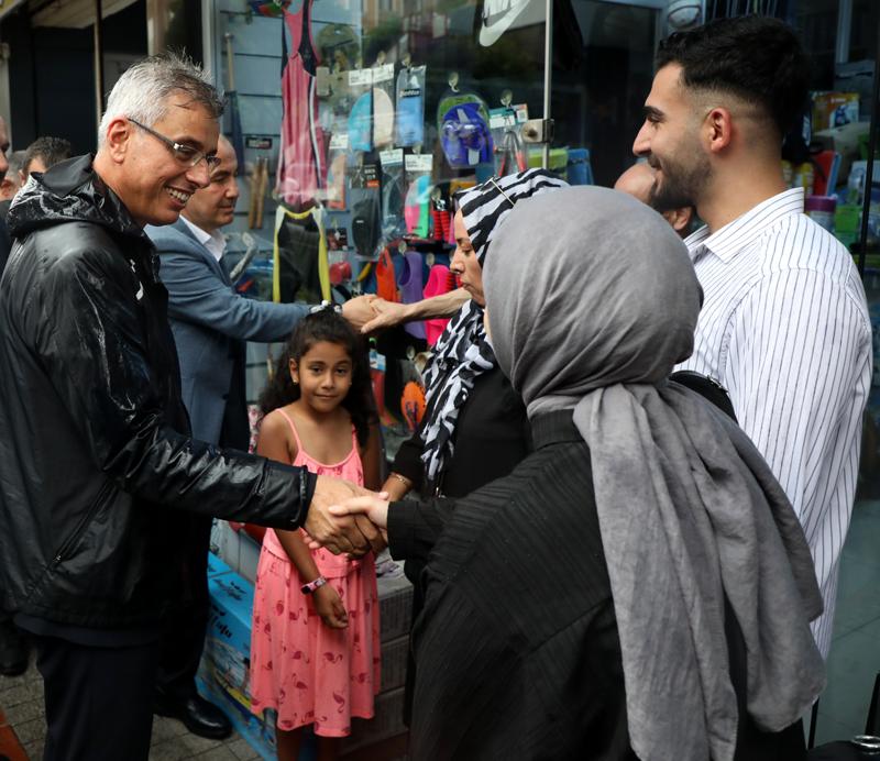 Vatandaşlarla sohbet eden Memişoğlu, yağmurun etkili olduğu kentte Belediye Bloklarına geçerek buradaki iş yerlerine ziyarette bulundu.