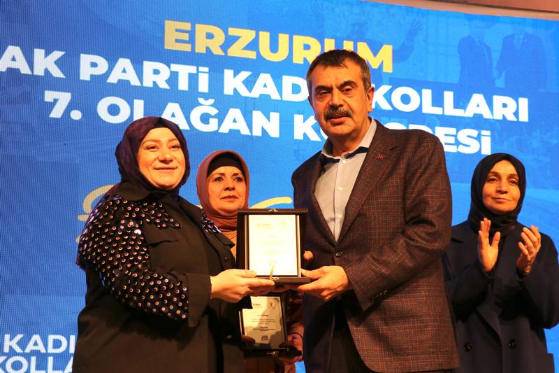 Necip Fazıl Kısakürek Kültür Merkezi'nde düzenlenen AK Parti Erzurum Kadın Kolları 7. Olağan Kongresi'nde, saygı duruşunda bulunulması ve İstiklal Marşı'nın okunmasının ardından Cumhurbaşkanı Recep Tayyip Erdoğan'ın kadın kolları için yolladığı mesaj okundu.
