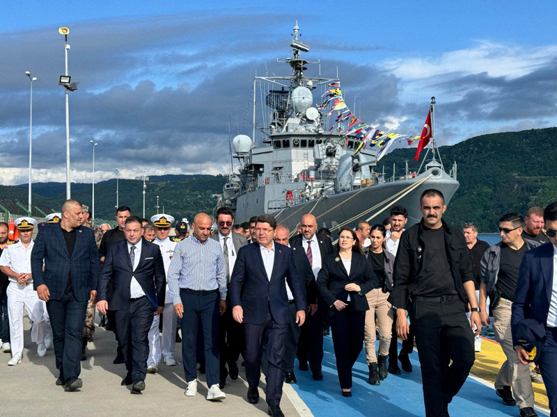 Bartın'ın Amasra ilçesindeki Büyük Liman iskelesine demirleyerek ziyarete açılan Türk Deniz Kuvvetleri Komutanlığına ait TCG Yıldırım Fırkateyni'ni gezen Bakan Tunç, gemi hakkında bilgi aldı, personelle sohbet etti.