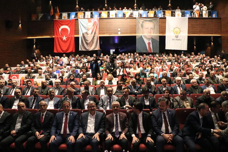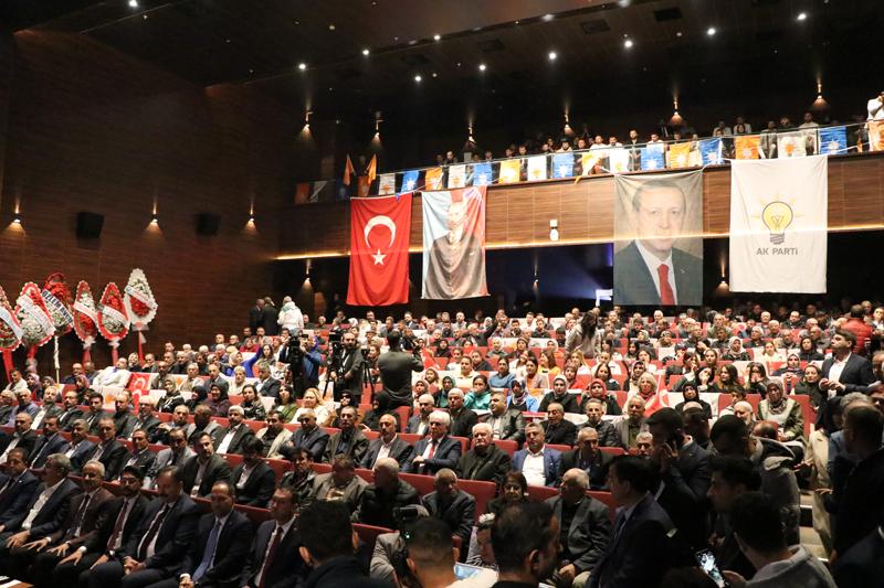 "Sizler, hiçbir menfaat beklemeden, ülkeye, vatana, millete hizmet aşkıyla çalışıyorsunuz. Sizler, bu davanın gönül erleri, en öncü kuvvetlerisiniz. Herkesten daha fazla çalışmamız, daha fazla mücadele etmemiz gerekiyor. Düşmanın, fitnenin, bozgunculuğun uzaklarda olmadığını biliyoruz. Ne diyor milli şairimiz Mehmet Akif, 'Dünya uyanıkken uyumak maskaralıktır.' Bizler de uyumayacağız. Milletimiz için çalışmaya, bıkmadan usanmadan gerçekleri anlatmaya, doğruları haykırmaya devam edeceğiz. Bakın, Cumhurbaşkanımız Sayın Recep Tayyip Erdoğan, yurt içinde de uluslararası arenalarda da her vakit gerçekleri haykırıyor. Zulme uğrayan milletlerin, Gazze'nin, Filistin'in sesi oluyor. Biz istiyoruz ki bölgede güven tesis edilsin. İnsanımız huzur içinde yaşasın, her şekil terör tehditlerini beraberce ortadan kaldıralım. Bunu bizden başka kimse maalesef istemiyor. Çünkü işlerine gelmiyor. Mücadelemiz, haklı davamızı, hizmetlerimizi, projelerimizi kapı kapı anlatmaktır. İmar etmek, inşa etmek, hizmet etmek ise başta bizler olmak üzere hepimizin görevidir. Taş üstüne taş koymayanların ettikleri boş laflar sizi aldatmasın."