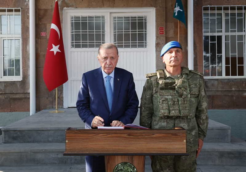 Tabur Komutanlığına gelişinde tören mangasını selamlayan Erdoğan, özel defteri imzaladı.