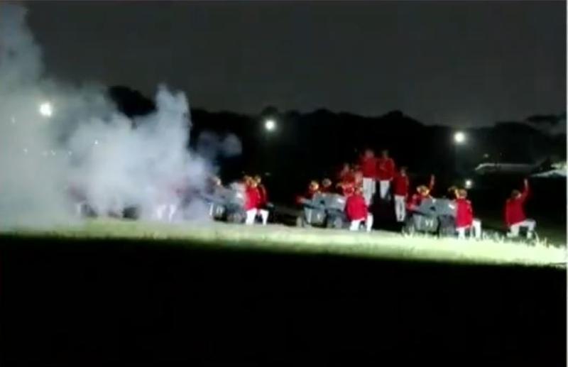 Cumhurbaşkanı Erdoğan'ı karşılama töreninde çok sayıda top atışı gerçekleştirildi.