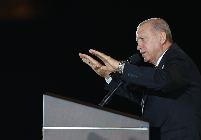 Türkiye'nin, Cumhuriyet tarihi boyunca tamamı aynı amaca hizmet eden pek çok kirli senaryoya maruz kaldığını belirten Erdoğan, bir dönem ilerici-gerici, laik-anti laik denilerek milletin ayrıştırıldığını, Alevi-Sünni, Kürt-Türk denilerek insanlar arasına nifak sokulmak istendiğini hatırlattı.