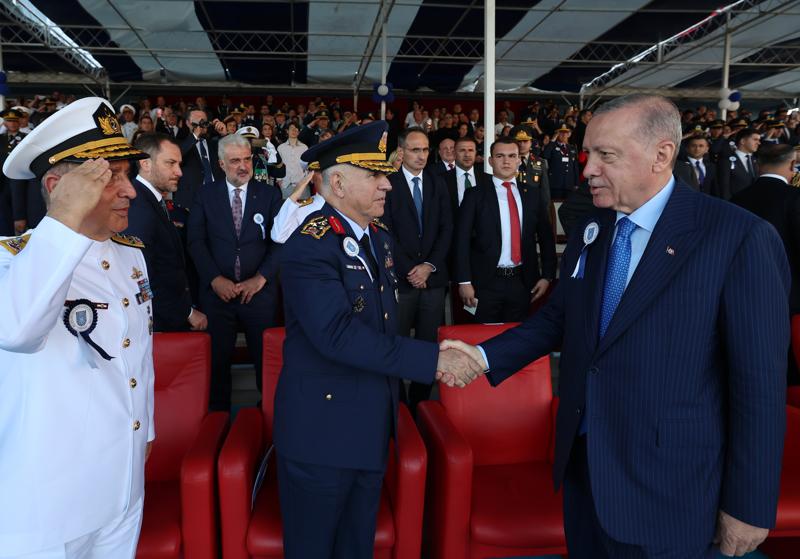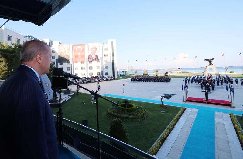 Cumhurbaşkanı Erdoğan, Bakırköy'deki Milli Savunma Üniversitesi (MSÜ) Hava Harp Okulu Diploma Alma ve Sancak Devir Teslim Töreni'nde mezun askerleri selamladı.
