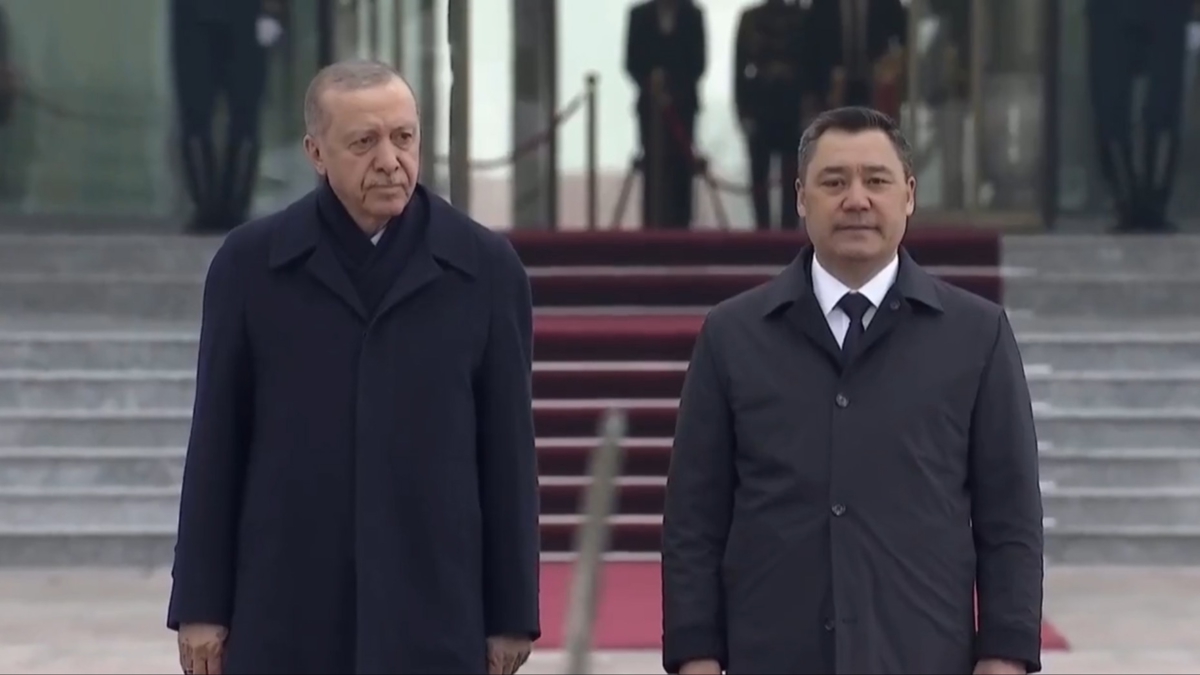 Cumhurbaşkanı Recep Tayyip Erdoğan, Türk Devletleri Teşkilatı (TDT) Devlet Başkanları Konseyi 11. Zirvesi'ne katılmak üzere bulunduğu Kırgızistan'da, Cumhurbaşkanı Sadır Caparov tarafından resmi törenle karşılandı.