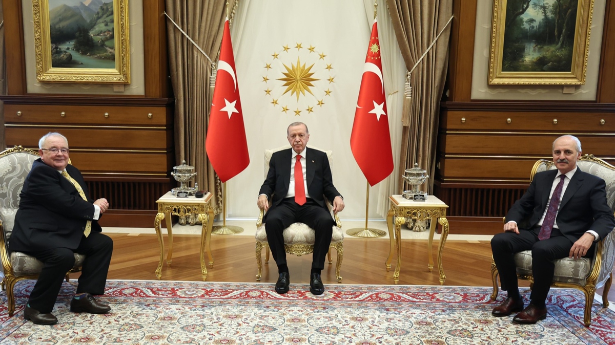 Cumhurbaşkanı Recep Tayyip Erdoğan, İrlanda Meclis Başkanı Sean O Fearghail'i Cumhurbaşkanlığı Külliyesi'nde kabul etti. <img class='rich-text-photo' src='https://imgscdn.stargazete.com/imgsdisk/2024/07/18/35173866.jpg'/>Kabulde TBMM Başkanı Numan Kurtulmuş da yer aldı.