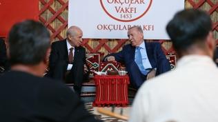 Cumhurbaşkanı Erdoğan'ın konuşmasının ardından Okçular Vakfı Başkanı Haydar Ali Yıldız, Erdoğan'a ve MHP Genel Başkanı Devlet Bahçeli'ye günün anısına hediye takdim etti. Hediye takdiminin ardından, Erdoğan, katılımcılarla aile fotoğrafı çektirdi.