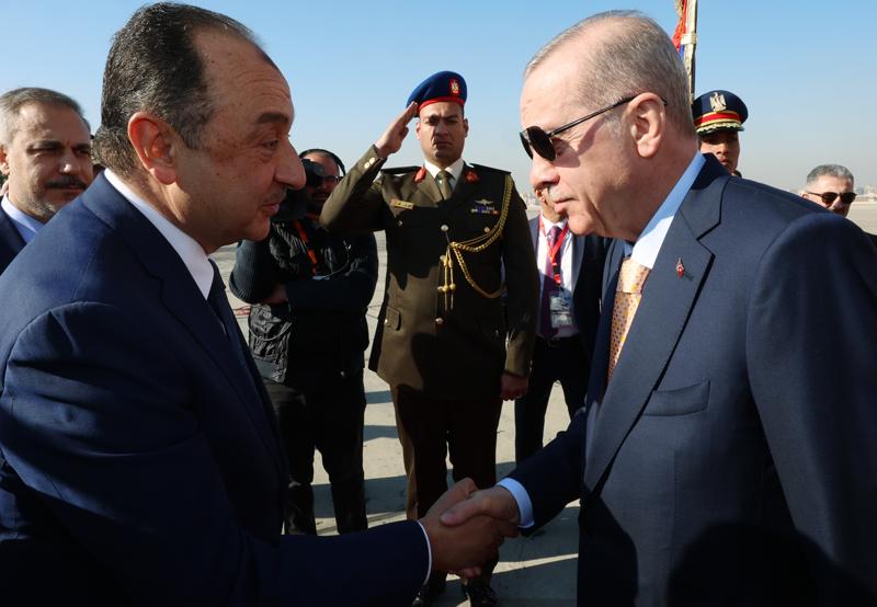 Cumhurbaşkanı Erdoğan'ı, Kahire Uluslararası Havalimanı'nda, Dışişleri Bakanı Hakan Fidan, Türkiye'nin Kahire Büyükelçisi Salih Mutlu Şen ve Mısırlı yetkililer karşıladı.