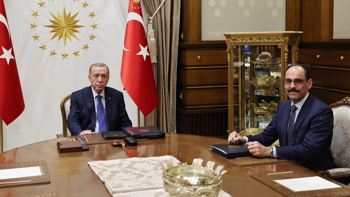 Cumhurbaşkanı Erdoğan, MİT Başkanı Kalın'ı Cumhurbaşkanlığı Külliyesi'nde kabul etti.