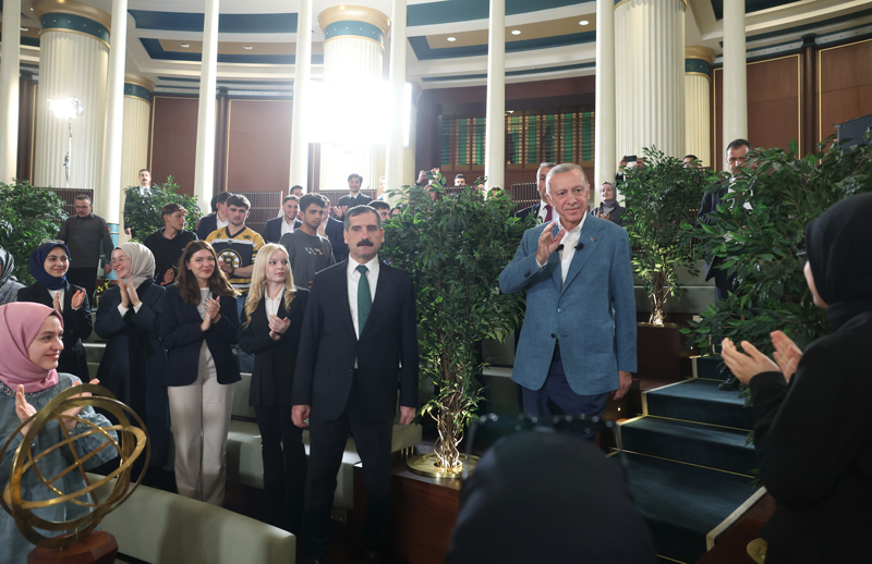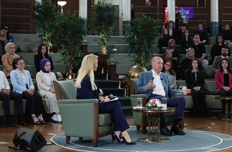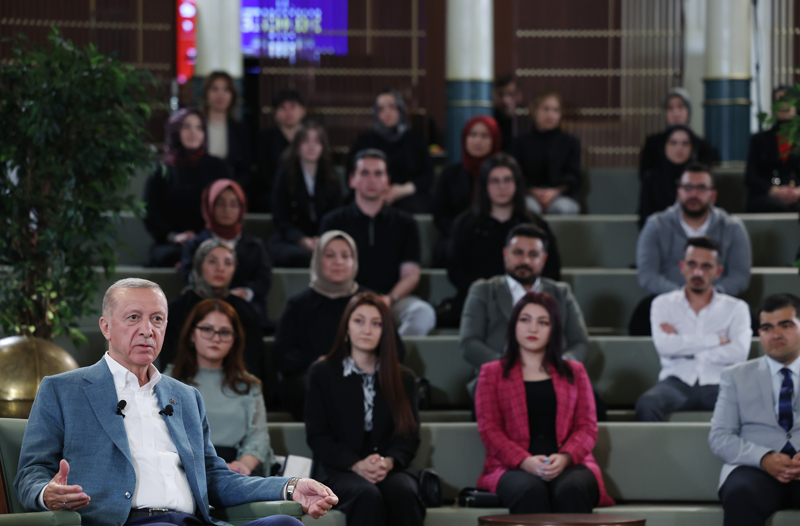 Erdoğan, Cumhurbaşkanlığı Külliyesi Millet Kütüphanesi'nde gençlerle bir araya geldi, sorularını cevapladı.
