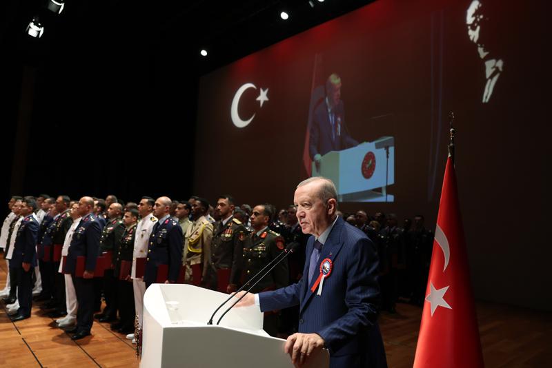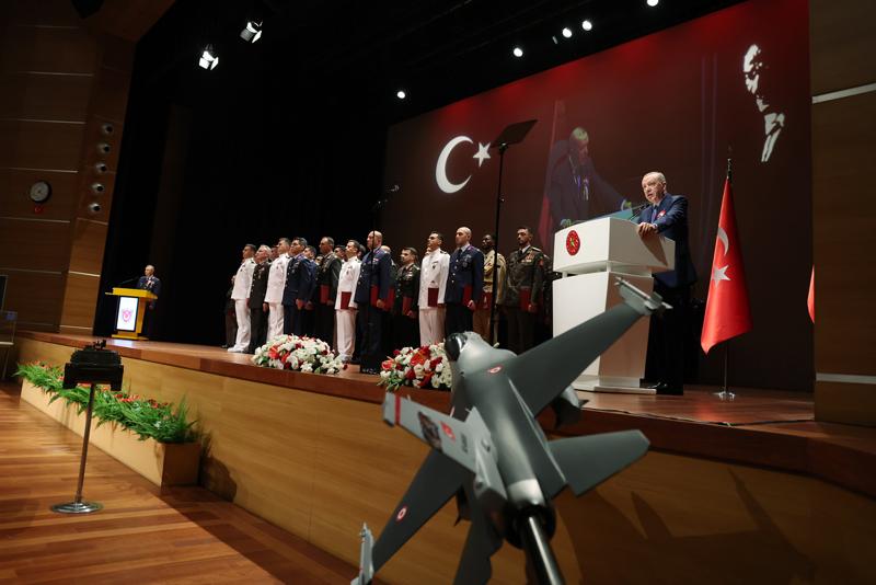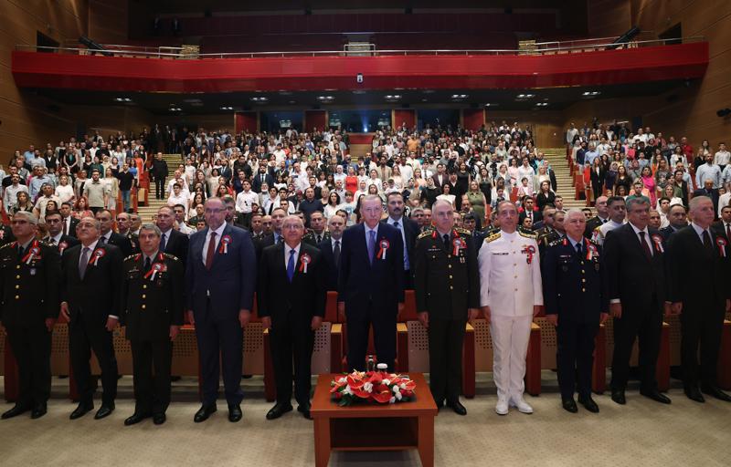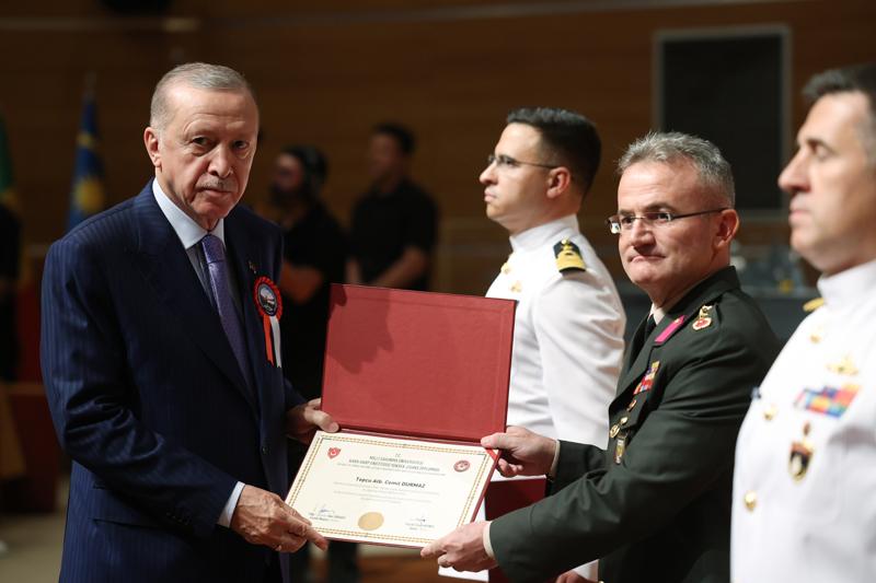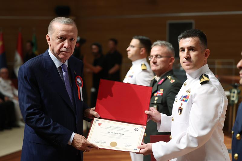 Üniversitenin Harp Enstitüsü'nde 12. Dönem Müşterek Komuta ve Kurmay Eğitimi ile Kara, Deniz ve Hava Harp Enstitüleri'nde 6. Dönem Komuta ve Kurmay Eğitimleri'ni bitiren tüm subayları tebrik eden Erdoğan, misafir subaylara da kendi ülkelerinde başarılar diledi.