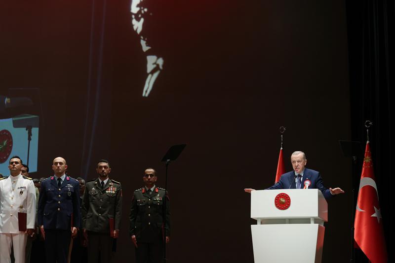 Erdoğan, mezun olan bütün subayları tebrik ederek üniversitenin rektörü ve yönetim kademesine de takdirlerini iletti.