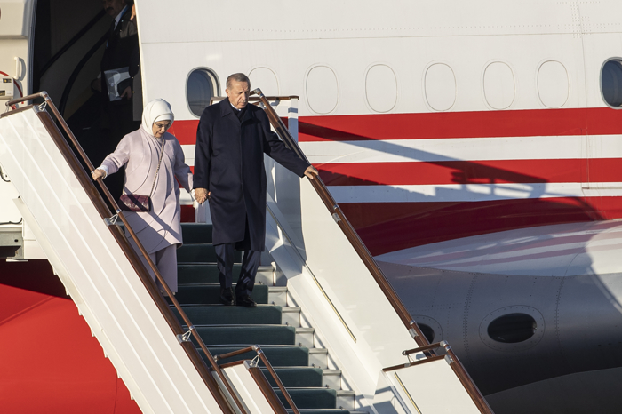 Cumhurbaşkanı Erdoğan'ı, Semerkant Uluslararası Havalimanı'nda, Özbekistan Başbakanı Abdulla Aripov, Başbakan Yardımcısı Camşid Hocayev, Dışişleri Bakan Yardımcısı Gayrat Fazilov ile Dışişleri Bakanı Mevlüt Çavuşoğlu, Türkiye'nin Taşkent Büyükelçisi Olgan Bekar, Özbekistan'ın Ankara Büyükelçisi Alişer Azamhocayev ve diğer yetkililer karşıladı.