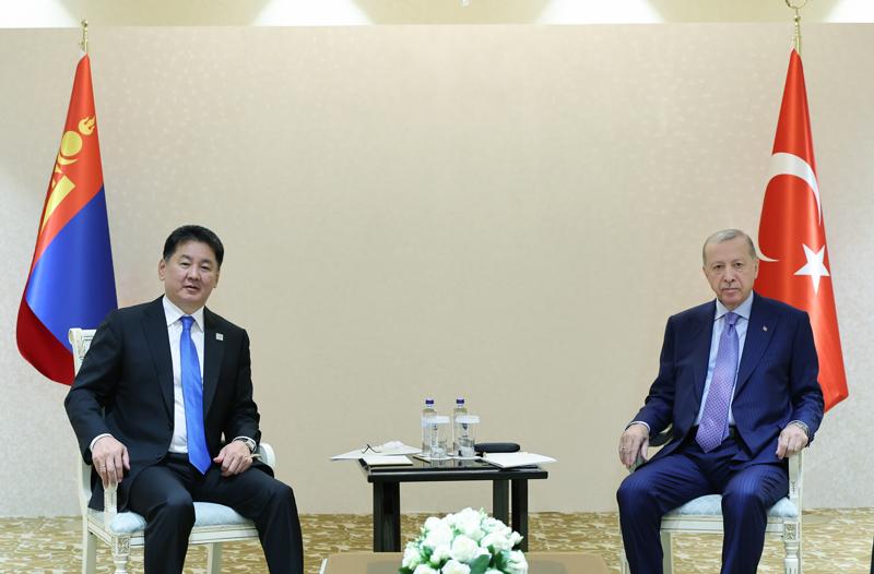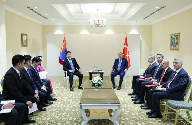 Cumhurbaşkanı Erdoğan, Şanghay İşbirliği Örgütü 24'üncü Devlet Başkanları Zirvesi için geldiği Kazakistan'ın başkenti Astana'daki ikili temasları kapsamında Moğolistan Cumhurbaşkanı Khurelsukh ile bir araya geldi.