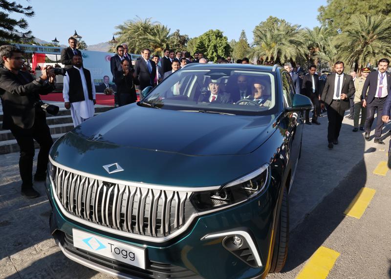 Cumhurbaşkanı Recep Tayyip Erdoğan, Pakistan Başbakanı Şahbaz Şerif'e Türkiye'nin yerli elektrikli otomobili Togg'u hediye etti.