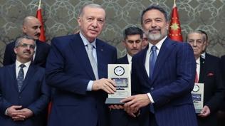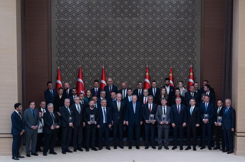 Cumhurbaşkanı Erdoğan, ödül töreninin ardından, ödül alanlarla hatıra fotoğrafı çektirdi.