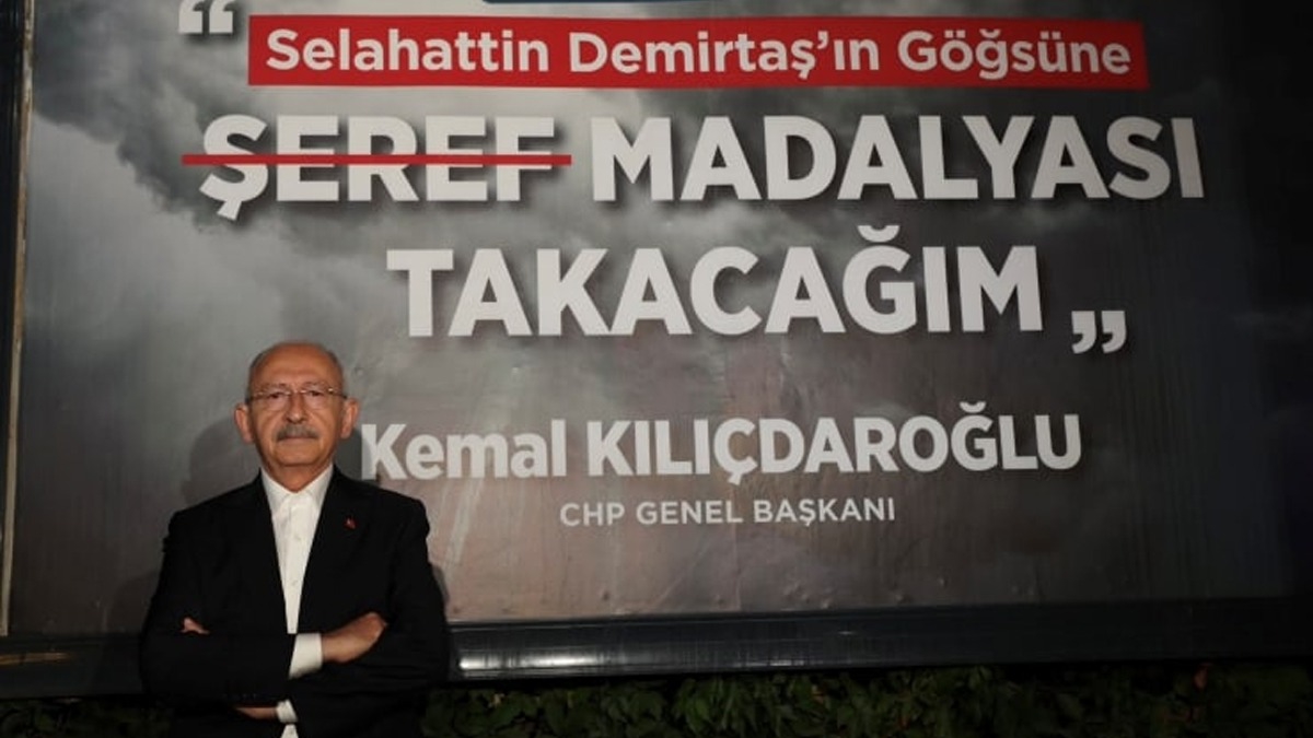''Demirtaş pankartı'' önünde fotoğraf çektiren Kılıçdaroğlu'na tepki:  Şehitlerimizin kemiklerini sızlattı