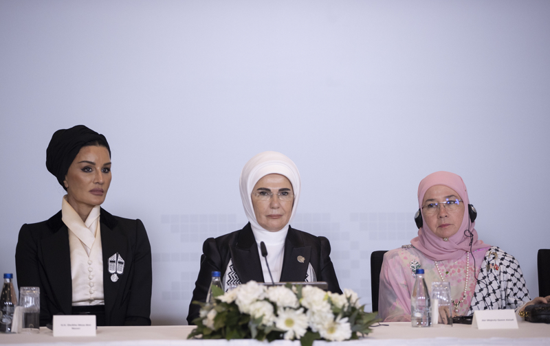 Emine Erdoğan, Cumhurbaşkanlığı Dolmabahçe Çalışma Ofisi'nde ev sahipliği yaptığı, pek çok ülkeden devlet ve hükümet başkanlarının eşleri ile özel temsilcilerin katılımıyla düzenlenen "Filistin İçin Tek Yürek" temalı zirve sonrasındaki basın toplantısında, zirve kapsamında hazırlanan ortak çağrı metnini okudu.