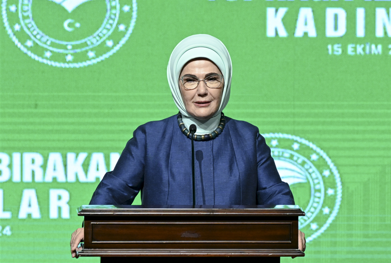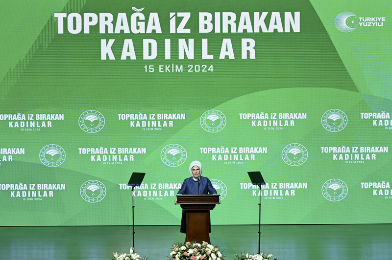 Emine Erdoğan, Tarım ve Orman Bakanlığı tarafından 15 Ekim Dünya Kadın Çiftçiler Günü dolayısıyla Cumhurbaşkanlığı Millet Kütüphanesi'nde düzenlenen, "Toprağa İz Bırakan Kadınlar" programına katıldı.