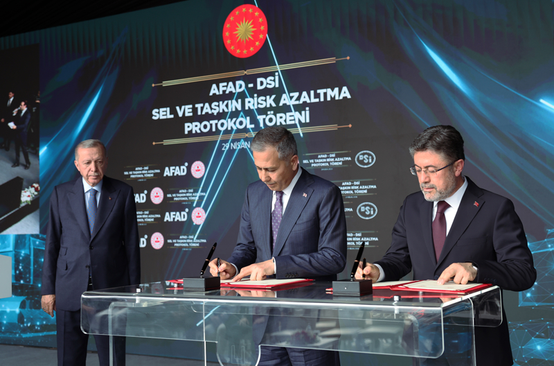 Cumhurbaşkanı Erdoğan'ın konuşmasının ardından Tarım ve Orman Bakanı Yumaklı ile İçişleri Bakanı Yerlikaya, AFAD-DSİ Sel ve Taşkın Risk Azaltma Protokolü'nü imzaladı.