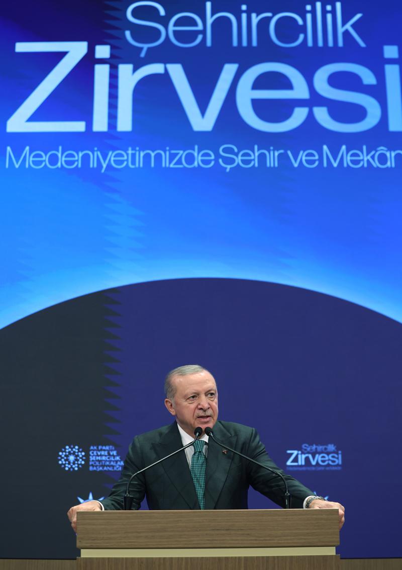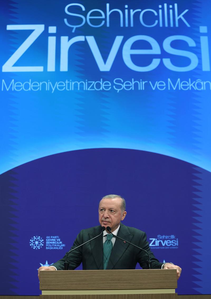 Erdoğan, AK Parti Kongre Merkezi'nde düzenlenen "Medeniyetimizde Şehir ve Mekan" temalı Şehircilik Zirvesi ile Kentkırım Sergisi'nin açılışına katıldı.