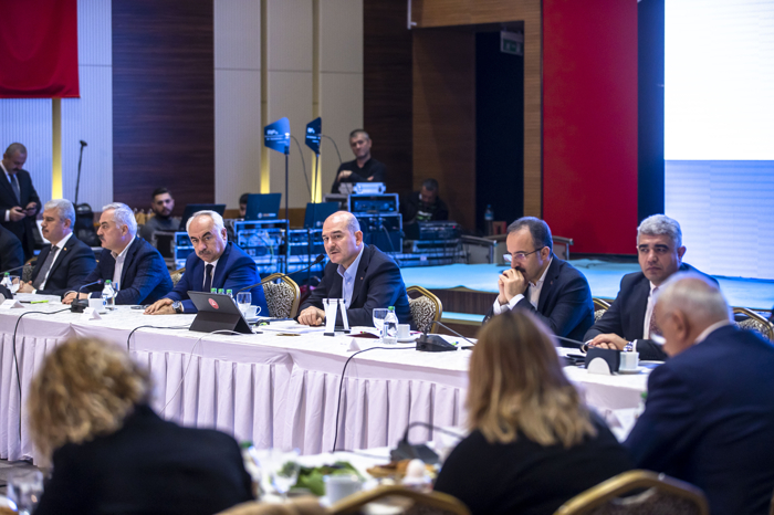 İçişleri Bakanlığının belediyeler ve yerel yönetimler üzerindeki yetki alanlarına ilişkin kamuoyunu aydınlatmak amacıyla bu toplantıyı düzenlediklerini vurgulayan Bakan Soylu, "Bugün PKK ve FETÖ'nün ve diğer terör örgütlerinin, gerek Doğu ve Güneydoğu'da, gerekse yurt sathında etkisinin kaybolmaya başlamasının sebebi, inlerine girmekten tutun, gerçekleştirilen operasyonlara kadar, belediyeleri istismar etmelerinden tutun, eleman devşirmek için organize ettikleri festivallere kadar hemen hemen tüm alanlarda vatandaşlarımızın katkısıyla verdiğimiz 360 derece mücadeledir." ifadelerini kullandı.