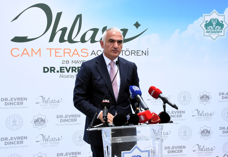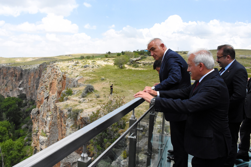 "Kültür ve Turizm Bakanlığı olarak ülkemizin her köşesindeki tarihi, doğal mirası korumak ve geleceğe taşımak için çalışıyoruz. Yerden 150 metre yükseklikte inşa edilen ve 12 metre açık alana sahip olan cam terasla, ziyaretçiler manzarayı geniş bir perspektifte en güzel noktadan seyredebilecek. İçinde kafeterya, yürüyüş yolu, fotoğraf çekim noktası, otopark, mescit ve lavabolar gibi sosyal donatılara sahip. Proje için ayrıca özel bir çevre ve peyzaj çalışması da yapıldı. Her yıl yaklaşık 1 milyon yerli ve yabancı turist tarafından ziyaret edilen Ihlara Vadisi, tarihi ve doğal güzelliklerinin yanı sıra bölgeye gelen turistlere bakanlığımızın gerçekleştirdiği çevre düzenleme projesiyle 14 kilometre uzunluğundaki muhteşem bir yürüyüş parkuru da bu fırsatta sunulmakta."