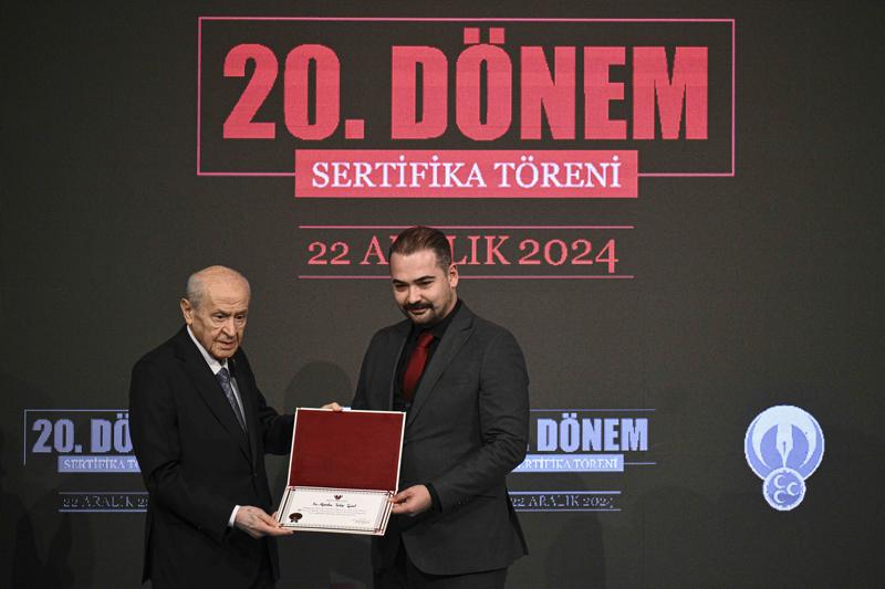Konuşmaların ardından, Siyaset ve Liderlik Okulu'nun 20. Dönemini ilk üç sırada tamamlayanlara sertifikaları MHP Genel Başkanı Bahçeli tarafından takdim edildi.