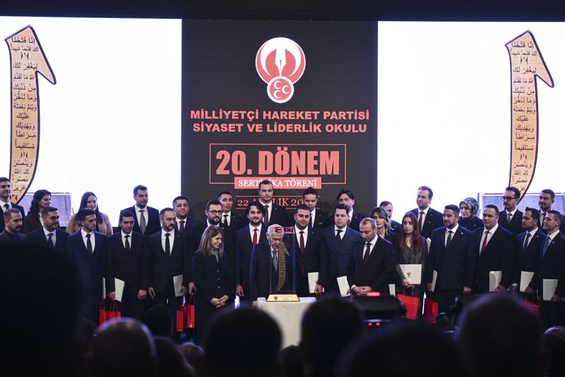 Bahçeli, MHP Genel Merkezinde düzenlenen Siyaset ve Liderlik Okulu'nun 20. Dönem Sertifika Töreni'ne katıldı.