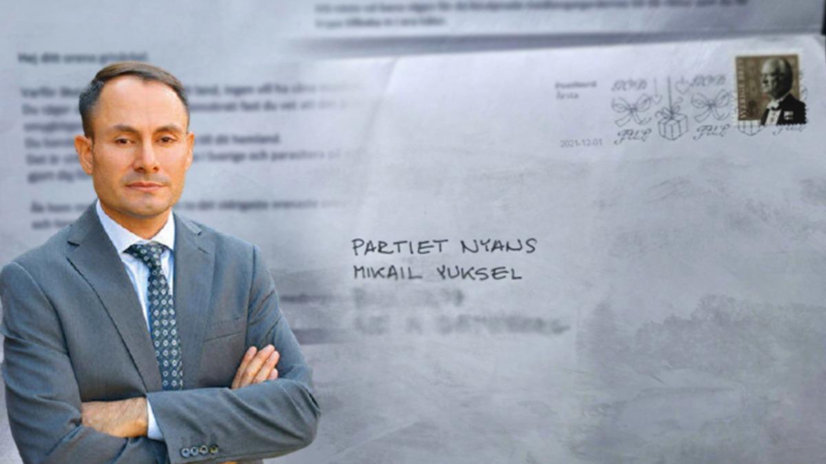 İsveç'te Farklı Renkler Partisi (Nyans) Genel Başkanı Mikail Yüksel'e içinde "Ülkene dön, pis domuz" yazan mektup gönderilmişti.