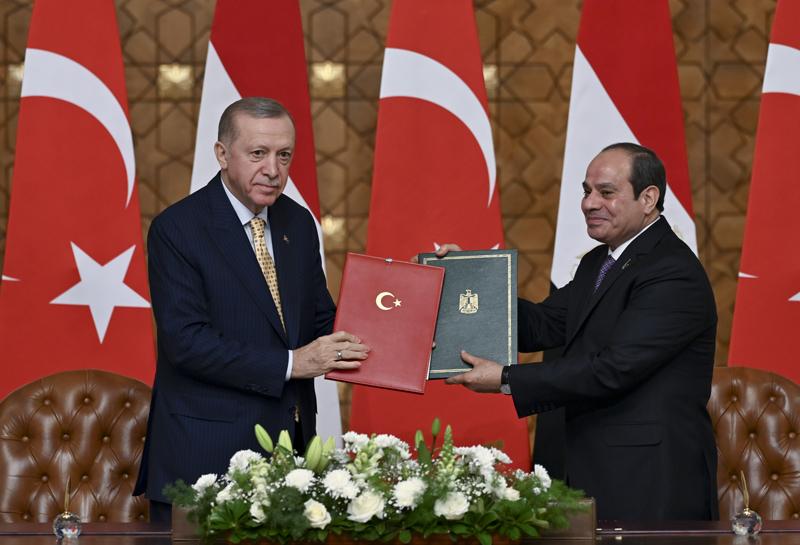 Mısır Cumhurbaşkanı Sisi, Erdoğan'ın ülkesini on yılı aşkın bir süre sonra ziyaret etmesinden duyduğu memnuniyeti dile getirerek, "İki ülke arasında yeni bir sayfa açıyoruz." ifadelerini kullandı.
