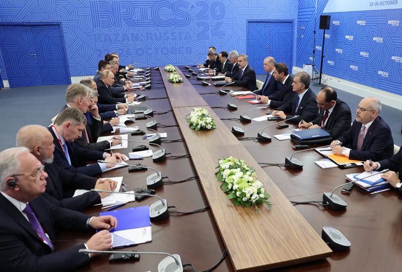 Putin, Cumhurbaşkanı Erdoğan ile Rusya Federasyonu'na bağlı Tataristan Cumhuriyeti'nin başkenti Kazan'da düzenlenen BRICS Liderler Zirvesi kapsamında bir araya geldi.