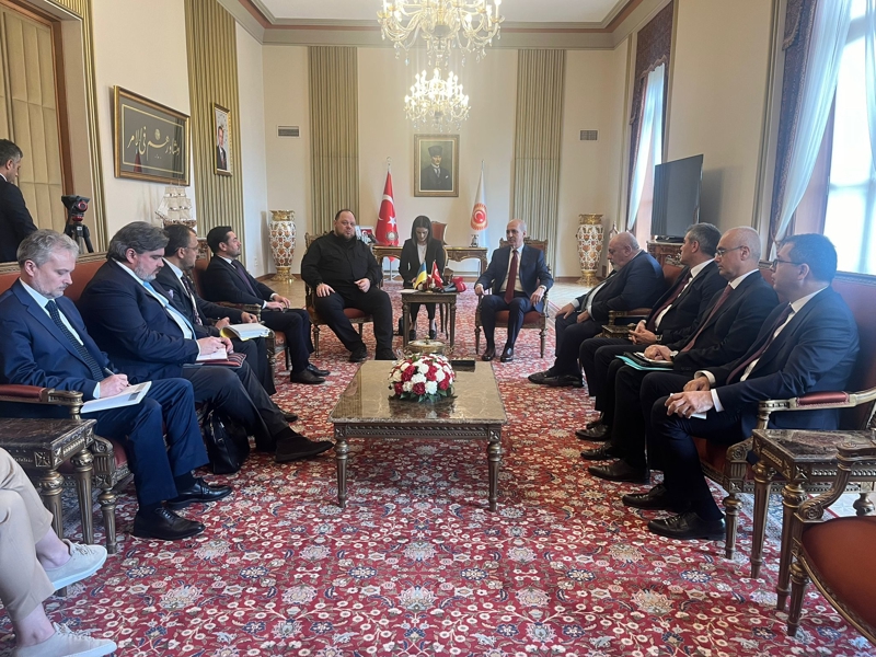 TBMM Başkanı Numan Kurtulmuş, Ukrayna Meclis Başkanı Ruslan Stefanchuk ile TBMM'deki makamında bir araya geldi. Görüşmede, AK Parti Ankara Milletvekili ve 27'nci Dönem Türkiye ve Ukrayna Parlamentolar Arası Dostluk Grubu Başkanı Yıldırım Tuğrul Türkeş ile Ukrayna Ankara Büyükelçisi Vasil Mironoviç Bodnar yer aldı. Kurtulmuş, Rusya ve Ukrayna arasındaki savaşın bir an önce bitirilmesi gerektiğini belirterek, "Savaşın, Ukrayna'ya çok ağır bedeller ödettiğini biliyoruz. 10 binlerle ifade edilen insani kayıplar, yakılmış, yıkılmış şehirler ve harap olmuş altyapının Ukrayna'ya çok büyük fiziki ve beşeri bir maliyeti olduğunun farkındayız. Bir an evvel Rusya-Ukrayna arasındaki savaşın bitirilmesi, Ukrayna'nın toprak bütünlüğü temin edilerek, kalıcı ve onurlu bir barışın temin edilmesi için Türkiye olarak büyük gayret sarf ediyoruz" ifadelerini kullandı.
