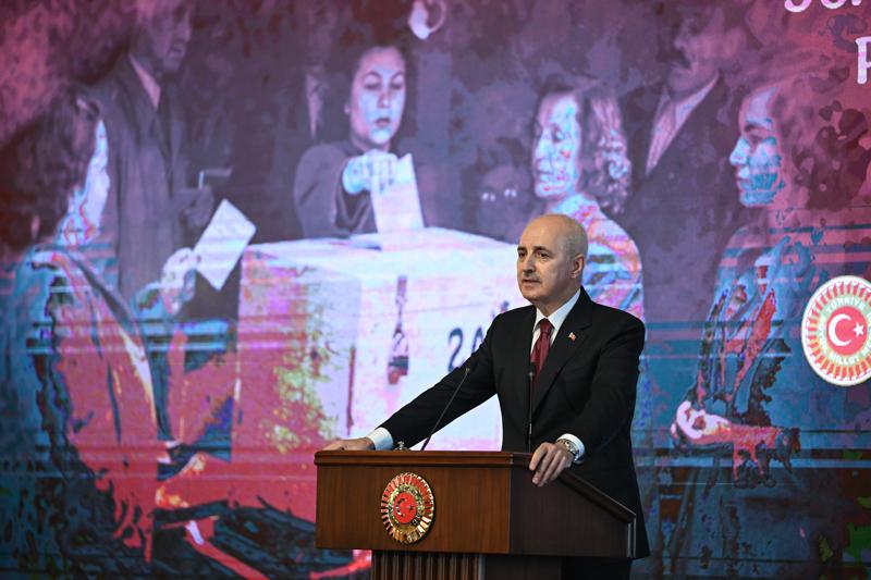 Numan Kurtulmuş, Türkiye'nin en büyük yasama ve denetleme fonksiyonunu icra eden, demokrasinin tecelligahı Meclis'te çeşitli partilerin çatısı altında kadın milletvekillerinin görev almasının bir tesadüf olmadığını belirterek, "Evet, rakamlar ilerlemiştir ama yeterli değildir. Bundan sonra hep beraber hepimizin vazifesi, Türkiye Büyük Millet Meclisi'nde kadın temsilinin artırılması için gayret sarf etmek, hep beraber bu mücadeleyi sürdürmektir." değerlendirmesinde bulundu.