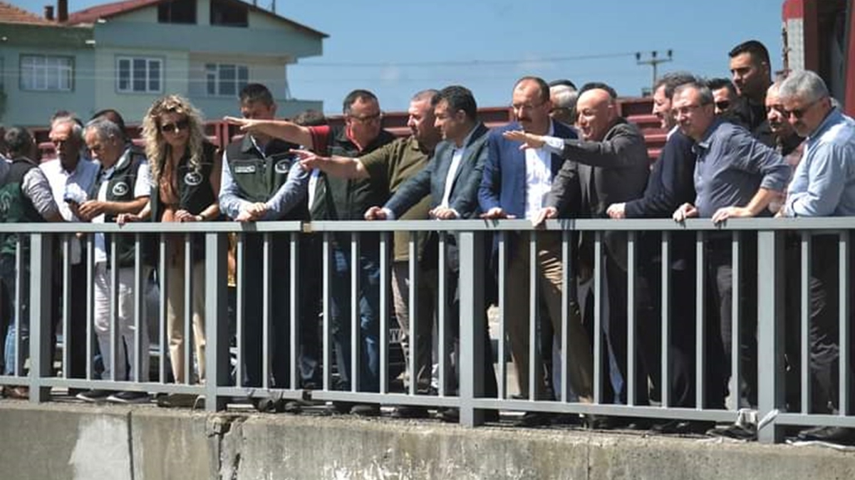 Sel taşkınlarının kontrol altına alınması için Terme Çayı Islah Projesi'ni yerinde inceleyen Muş, yetkililerden çalışmalar hakkında bilgi aldı.