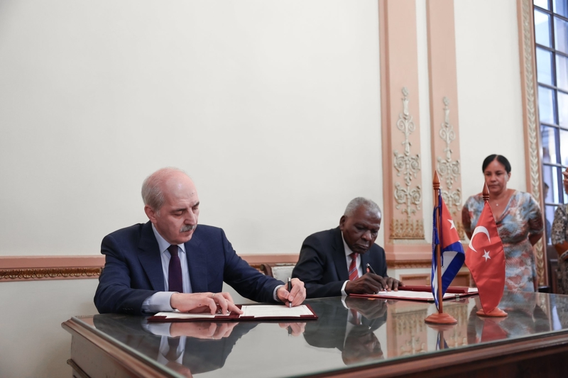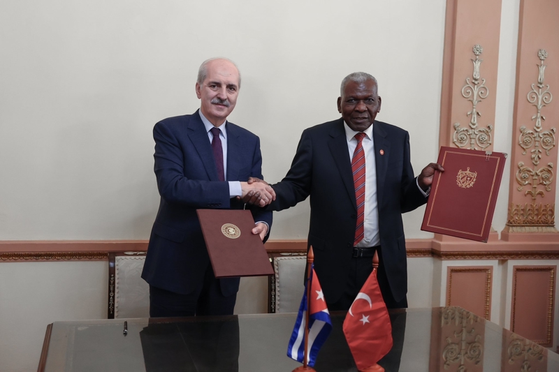 TBMM Başkanı Kurtulmuş ile Küba Halkın Gücü Ulusal Meclisi Başkanı Esteban Lazo Hernandez, Küba parlamento binası Capitolio'da gerçekleştirdikleri görüşmenin ardından iki ülke parlamentosu arasında, "Çalışma Grubu Kurulmasına İlişkin Mutabakat Zaptı"nı imzaladı.