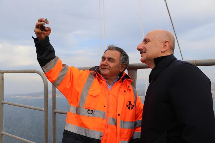 1915 Çanakkale Köprüsü'nün de bu aksın bir parçası olduğunu anlatan Karaismailoğlu, "Bizler çok sevinçliyiz, gururluyuz. Bu kadar büyük projelerin içerisinde olmak, burada arkadaşlarımıza ağabeylik yapmak hakikaten çok gurur verici. O yüzden diyoruz ki bunlar müthiş işler. Bugün Ayvacık'taki Küçükkuyu - Ayvacık yolu arasındaki Assos ve Troya tünellerimizi açtık. Yine bugün İstanbul, Çanakkale ve Ege aksında iki tane önemli hattı birbirine bağlamış olduk. 1915 Çanakkale Köprüsü'nün Avrupa yakasındaki ayakta tam 204 metre yüksekteyiz şu anda. Biz daha önce 318 metreye çıkıyorduk biliyorsunuz. Burası da köprünün tam bir seyir terası gibi görüyor. Tabii 204 metre ama bu sadece deniz yüzeyinden yüksekliği. Deniz yüzeyinin altında 45 metre daha derinlik var." diye konuştu.