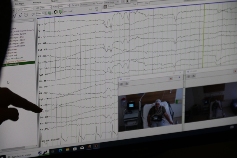 Eskişehir Şehir Hastanesi Nörofizyoloji Uzmanı Uzm. Dr. Selahattin Ayas, "Hastaya tedavi uygulamıyoruz, bu tanı amaçlı yapılan bir şey. Bildiğimiz gibi epilepsi hastalığı toplumda yaygın görülen hastalıklardan biri. Epilepsi, beyinde bazı nöron gruplarının anormal senkron deşarjı nedeniyle çeşitli klinik tablolarla karşımıza çıkıyor. Bu klinik tablolardan en önde geleni süregelen nöbet aktivitesi. Epilepsi hastalığının özellikle ayrıç tanısı, karışabilecek uyku hastalıkları paroksismal diğer nonepileptik hastalıklar, hareket bozuklukları ve fonksiyonel bozuklukların tanısının mutlaka epilepsiyle yapılması gerekiyor. Video EEG bu amaçla sık başvurduğumuz bir yöntem. Bununla birlikte epilepsi hastalığında medikal tedavi kullanılmakta. Anti-nöbet ilaçları kullanmaktayız ancak olguların yüzde 30 kadarında bu ilaçlara dirençli vakalar görülebilmekte. Bu vakalarda hasta eğer cerrahiye uygunsa cerrahi lokalizasyonun yapılması amacıyla video EEG çok sık olarak kullandığımız bir tetkik" dedi.