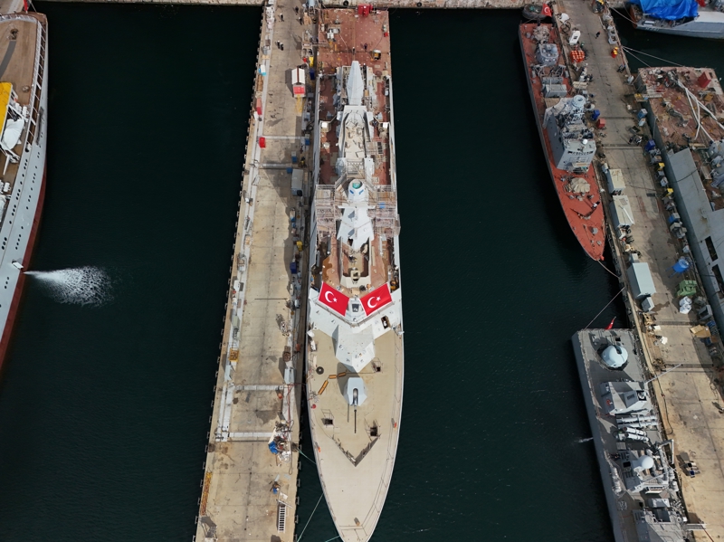 3 yılda bir gemi yapıldığını belirten Yetkin, "İlk defa bu gemimizde kullandığımız helikopter yakalama sistemi de yine bir başka firmamız tarafından yerlileştirmiş ve burada da kullanıma girecektir. Tasarımı ve fikri mülkiyet hakları Milli Savunma Bakanlığı'mıza ait olan bu gemimiz mavi vatanımızda keşif karakol, gözetleme, insanı yardım tahliye harekatı gibi bir çok faktörleri içerisine alan görev konfigürasyonuna sahip olacaktır. Sahip olduğu imkan kabiliyetleri ile daha etkin silahlara daha uzun menzilleri ile bu görevi layıkıyla yapacağına inanıyoruz. Daha önce 4 yılda yapılan bir gemi uyguladığımız yeni konsept sayesinde 3 yılda yapılabilir hale gelmiştir" ifadelerini kullandı.