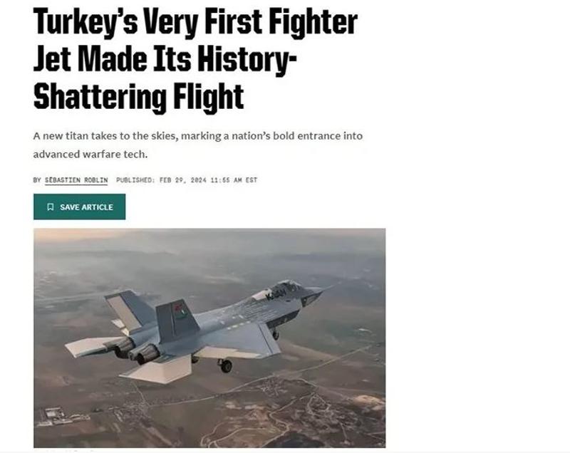 Sebastien Roblin imzalı analizde "Türklerin ilk savaş uçağı, tarihi uçuşunu gerçekleştirdi, Ankara'nın yeni 'Titanı' göklere çıktı" ifadesini kullandı. Modern ve beşinci bir nesil uçak inşa etmenin zorluklarının altını çizen Roblin, Türkiye'nin kendi kendine yetebilen bir ordu geliştirme planında KAAN'ın kritik bir rol oynadığını vurguladı.